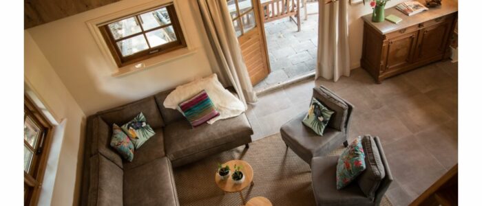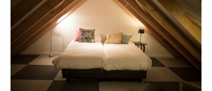 Het sfeervol ingerichte natuurhuisje is gelegen op het erf van een boerderij. Beneden zijn 2 slaapkamers en boven is er, naast de vide, een knusse slaapkamer. De royale boxsprings zijn tot 2.10 meter lang. Vanuit de gezellige woonkamer stap je zo op je eigen overdekte terras. ’s Avonds sfeervol verlicht kun je er in de dikke kussens nog lang nagenieten van een ontspannen dag.